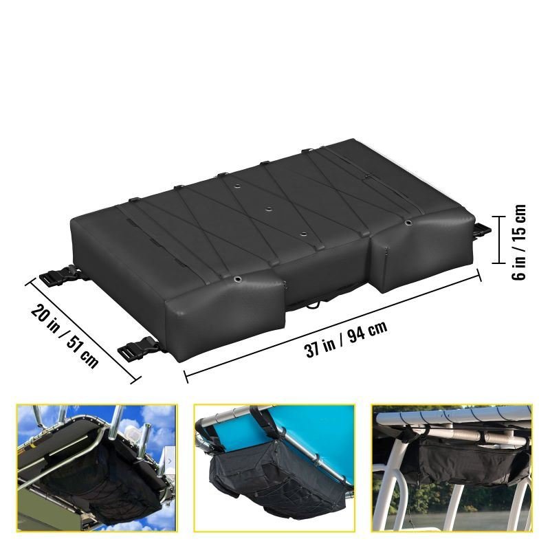 1.Our 37 x 20 x 6 inches T-Top boat storage bag can hold up to 6 life jackets (life jackets are not included), and lots of other gear. It can be easily mounted to most t-tops, and pontoon tops boats to store your belongings.